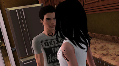 He smirked, crossing the room and pushing a clingy piece of her hair out of her pink eyes.